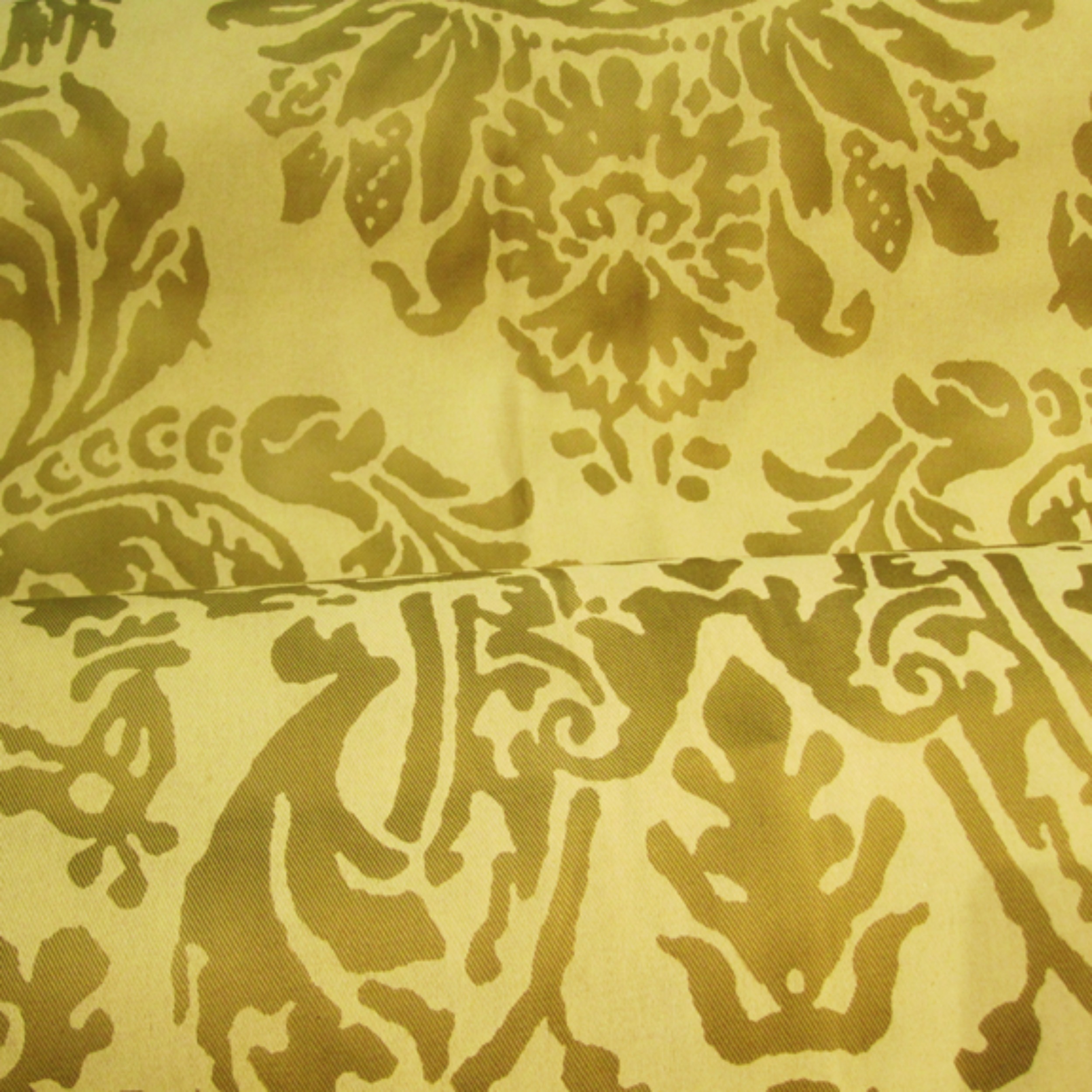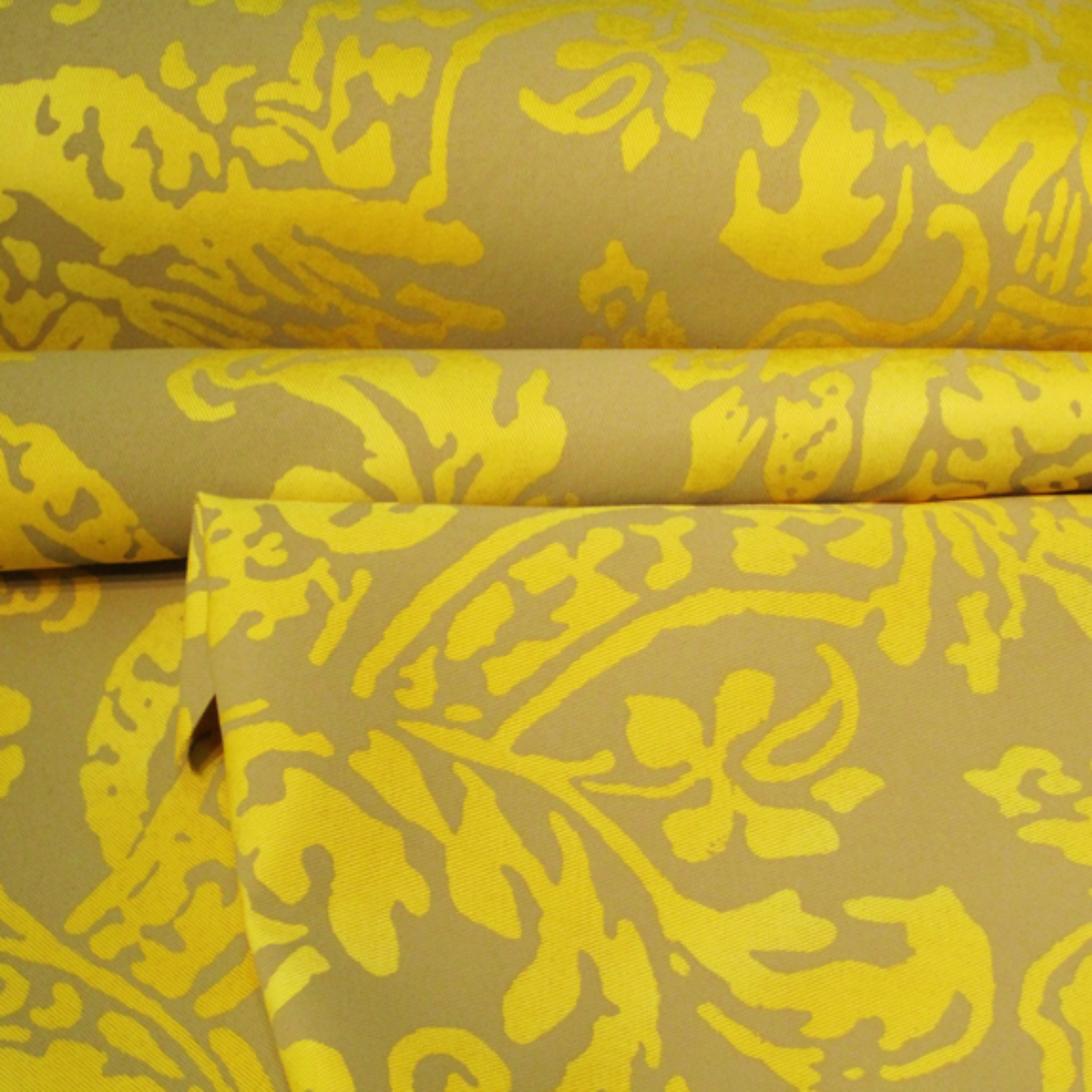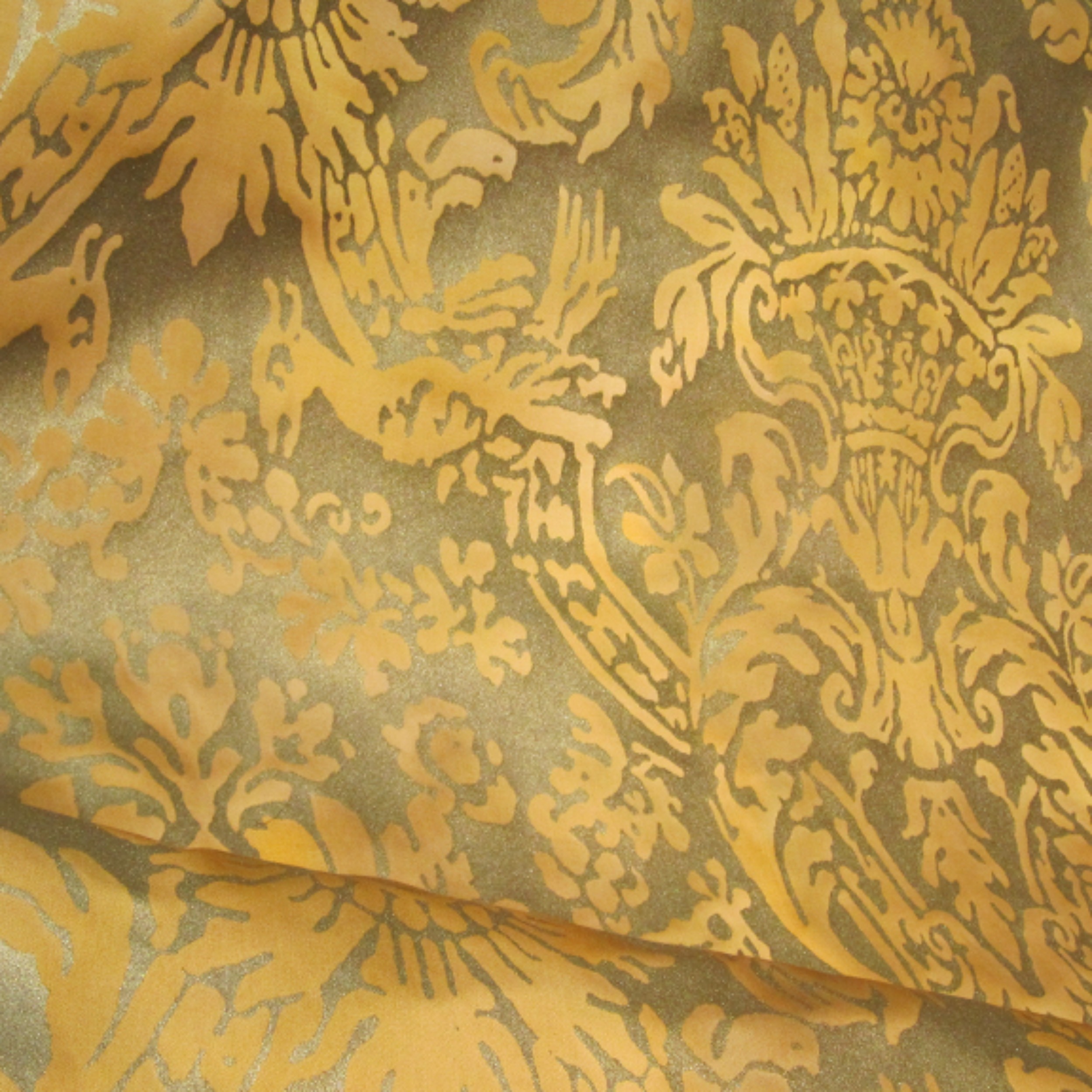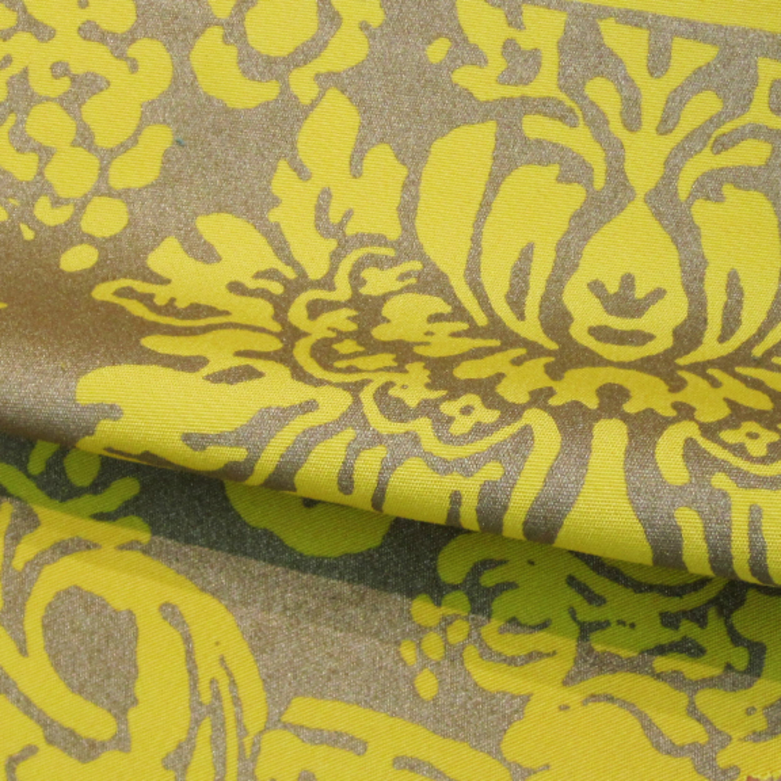520Y-KV-French dye is hand-painted, followed by metallic water-based ink being hand-printed onto the cotton fabric.