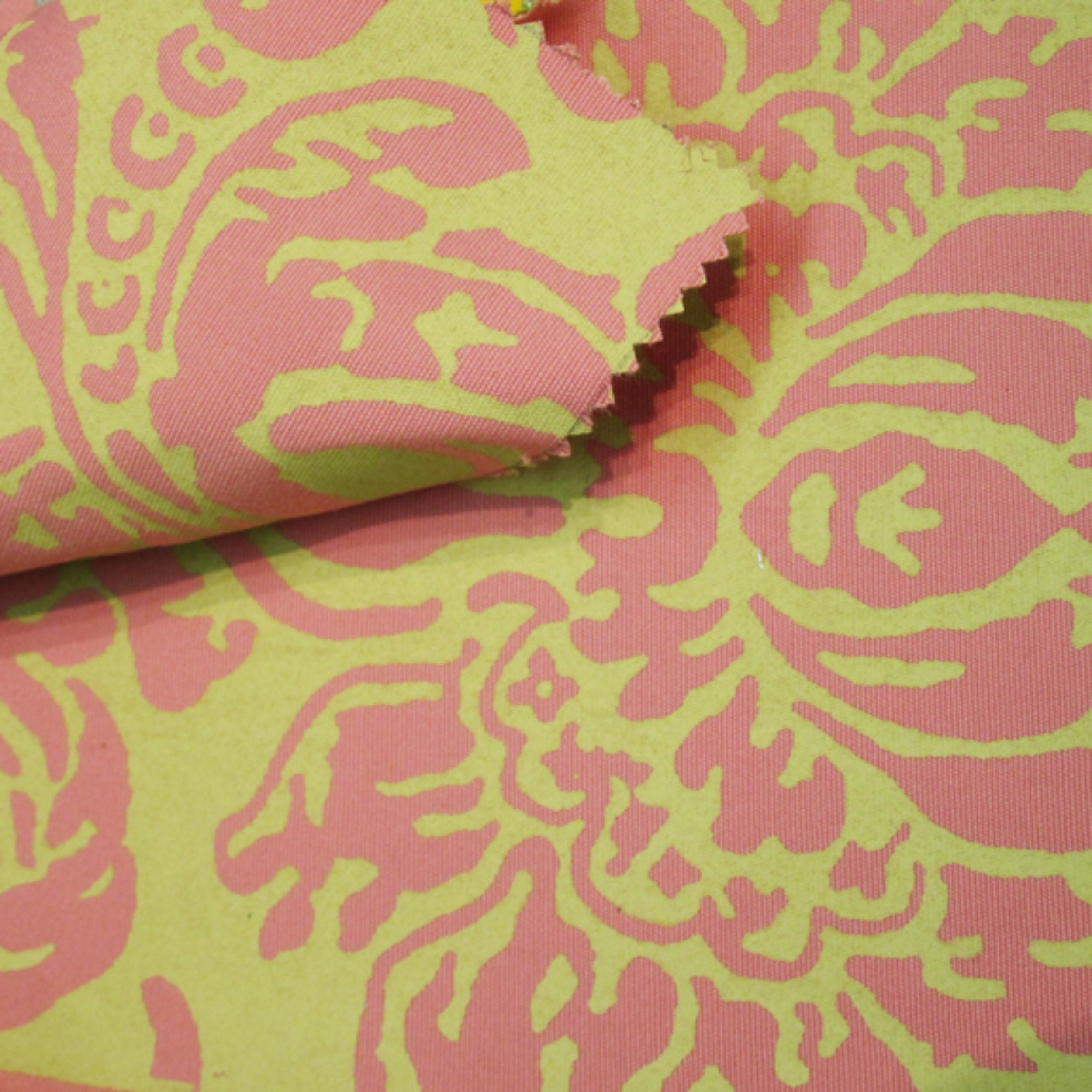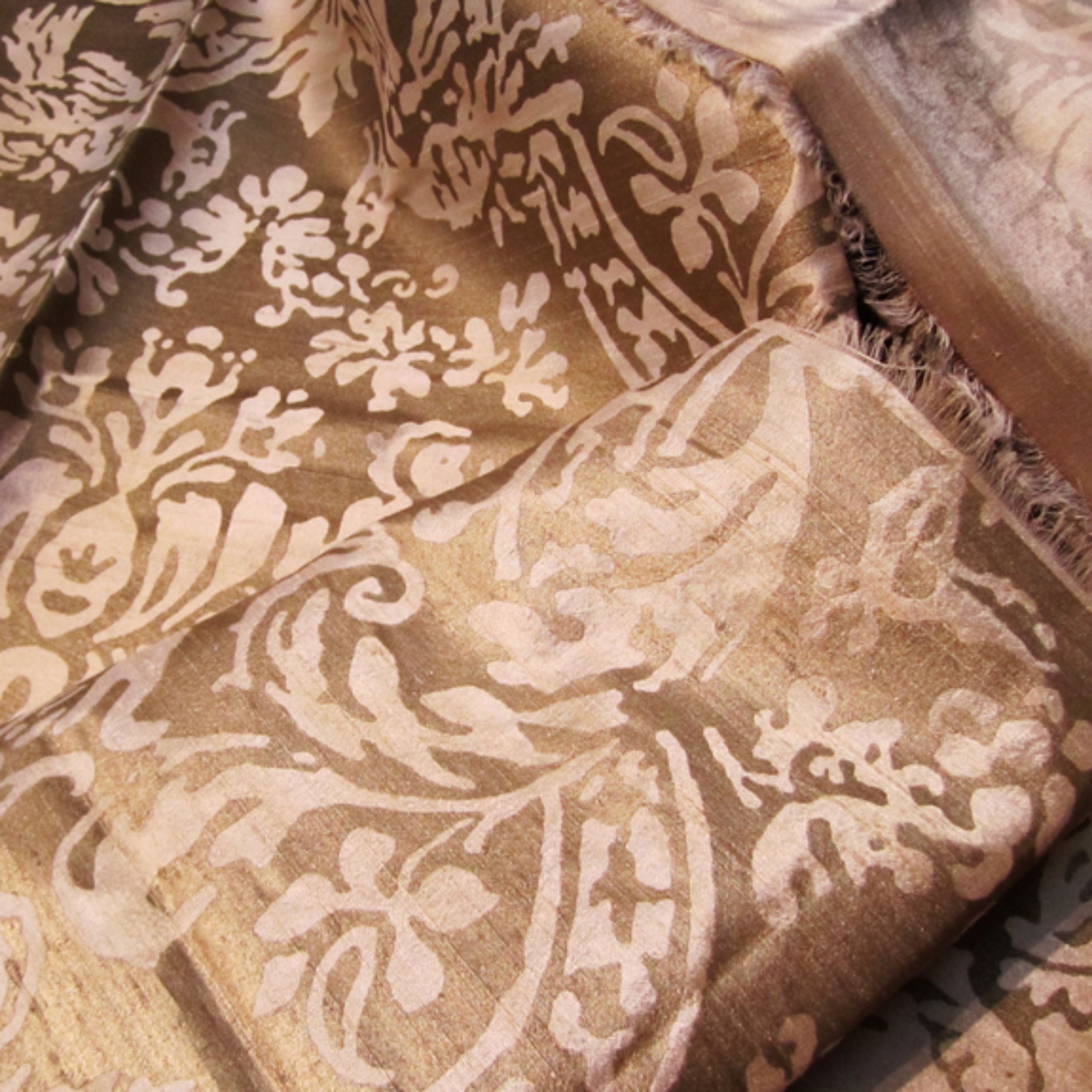 COCO-BEIGE-French dye is hand-painted, followed by metallic water-based ink being hand-printed onto the cotton fabric.