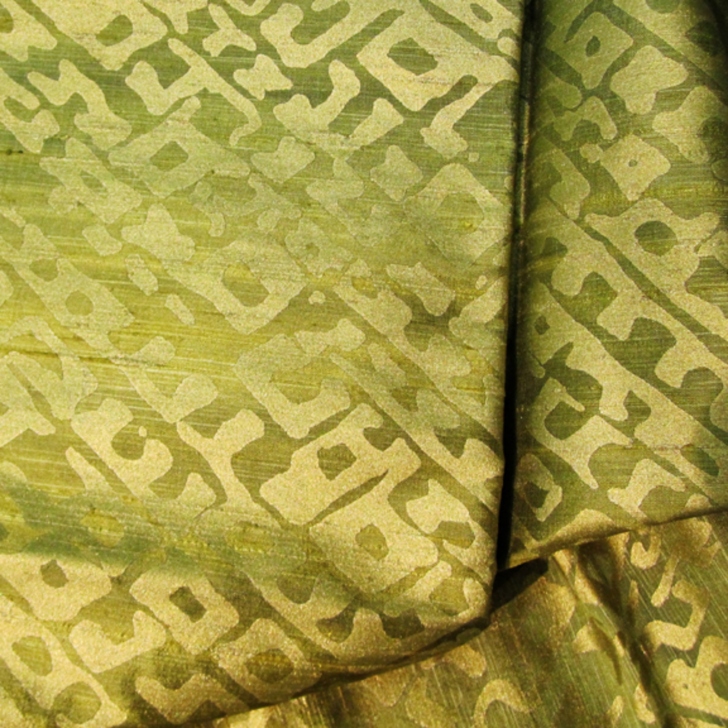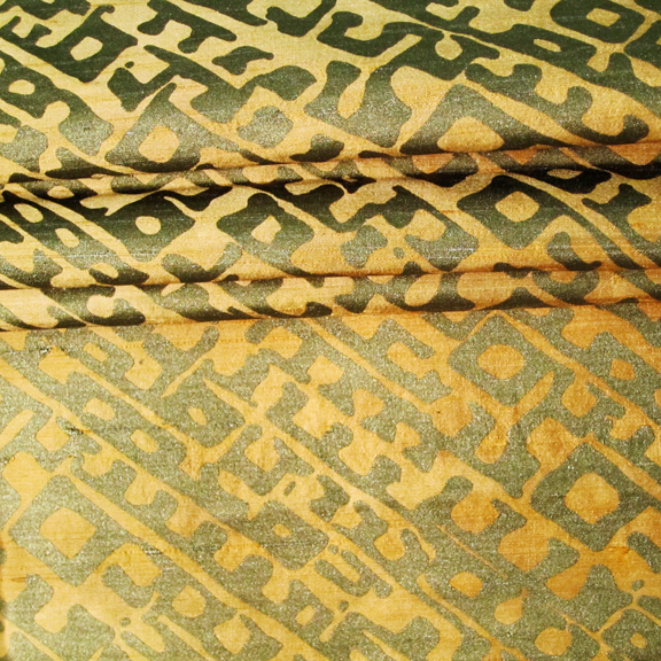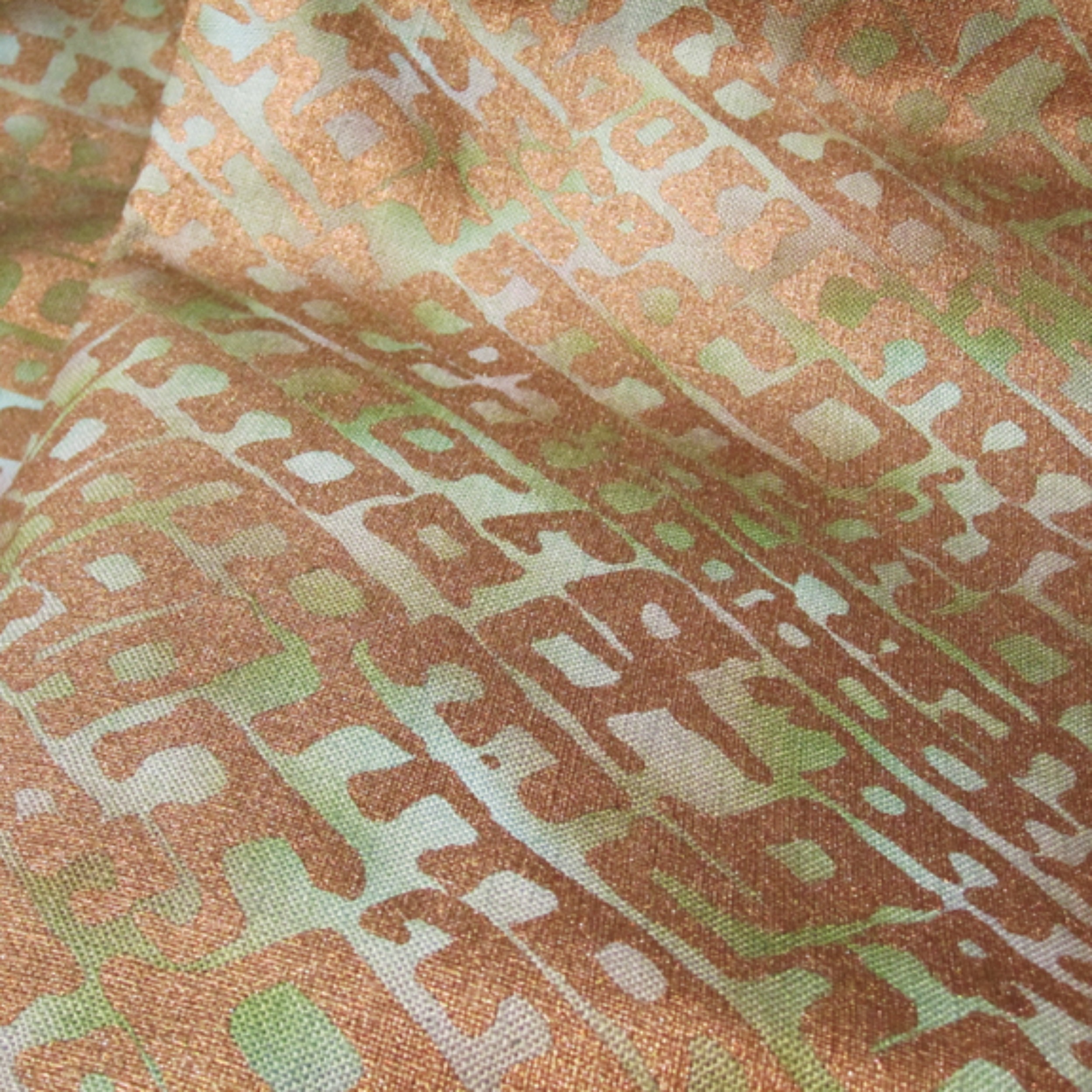 BAMBOO-GRG-French dye is hand-painted, followed by metallic water-based ink being hand-printed onto the Silk fabric.