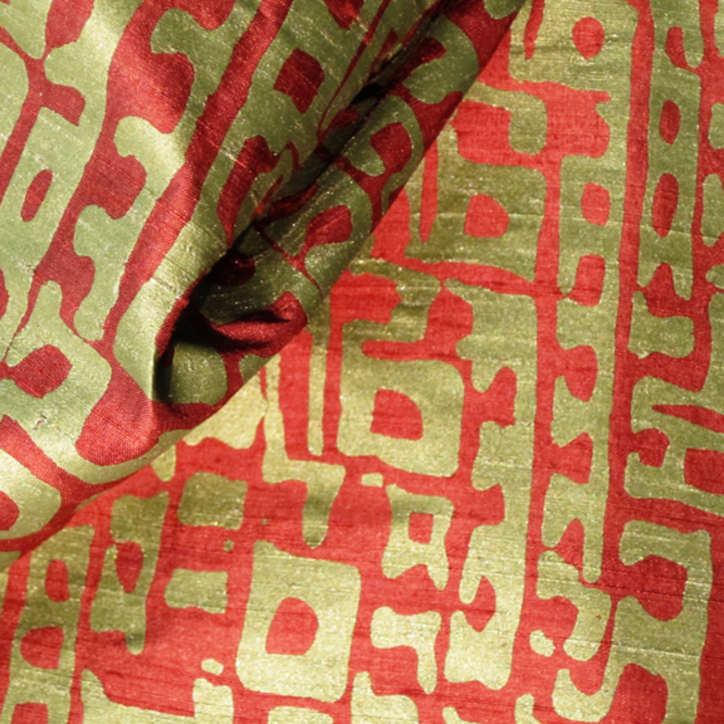 BATON ROUGE-GRG-French dye is hand-painted, followed by metallic water-based ink being hand-printed onto the Silk fabric.