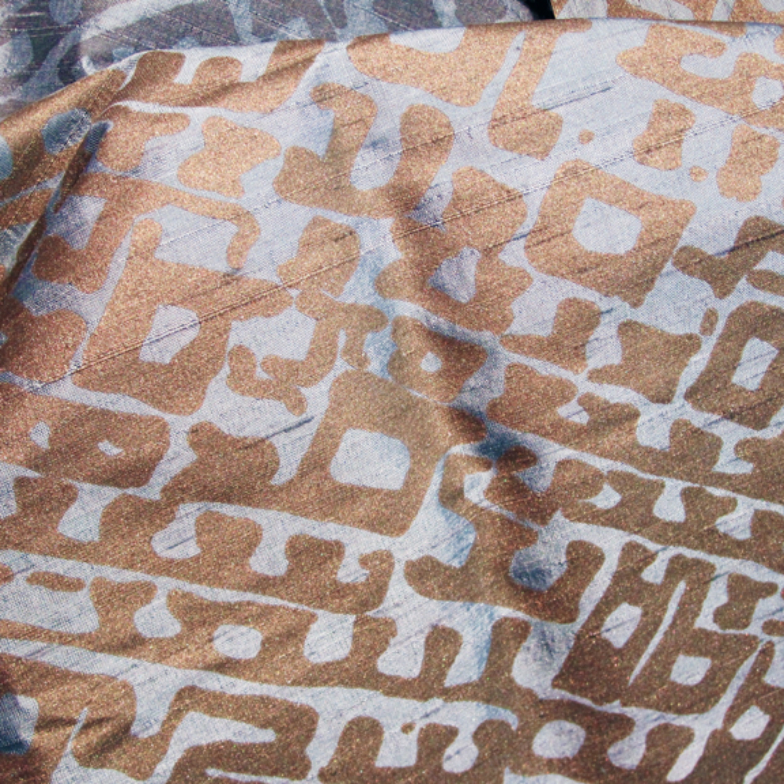 CALAIS-GRG-French dye is hand-painted, followed by metallic water-based ink being hand-printed onto the Silk fabric.
